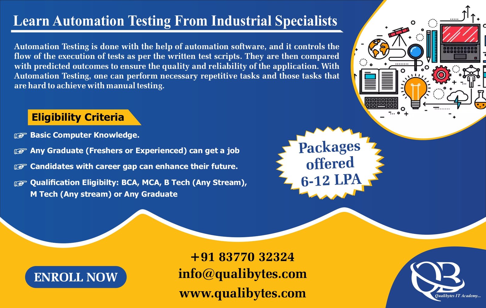 In this course, students will learn the fundamental concepts, tools, and best practices of automation testing, enabling them to design, develop, and execute automated test scripts effectively. By the end of the course, participants will possess the knowledge and skills necessary to excel in automation testing and enhance the quality of software products.